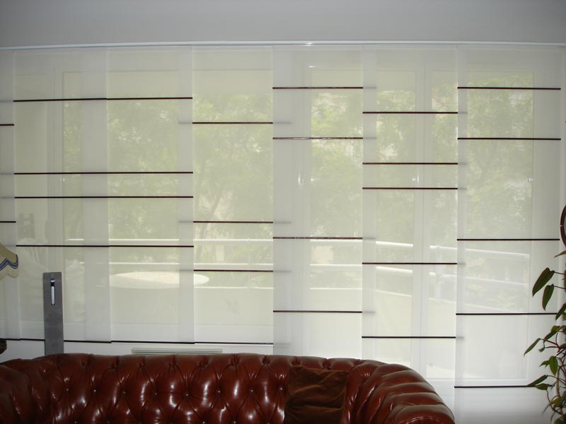 Disponibles comme ici en toile semi-transparente, ou en tissu diffusant la lumière tout en masquant la vue.